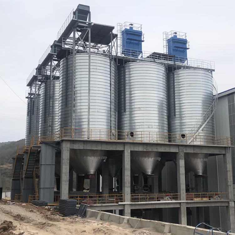 接收与清理设置在筒仓中央该形式筒仓一般采用对称排列,提升机井架固定,经过提升后的物料通过仓顶溜管进人筒仓。这种形式省去了仓顶输送设备和上通廊,从而节省了建造费用,缩短了建造工期。对于贮存时间要求较长的大型粮库,则应根据物料的流向、场地情况、工艺要求等合理地配置投料口、工作塔、烘干塔及遂宁钢板仓的位置。国华钢板仓介绍了这几种常见的进料形式,实际中可将各种形式相互组合,相互渗透,根据实际情况合理搭配,灵活选用。